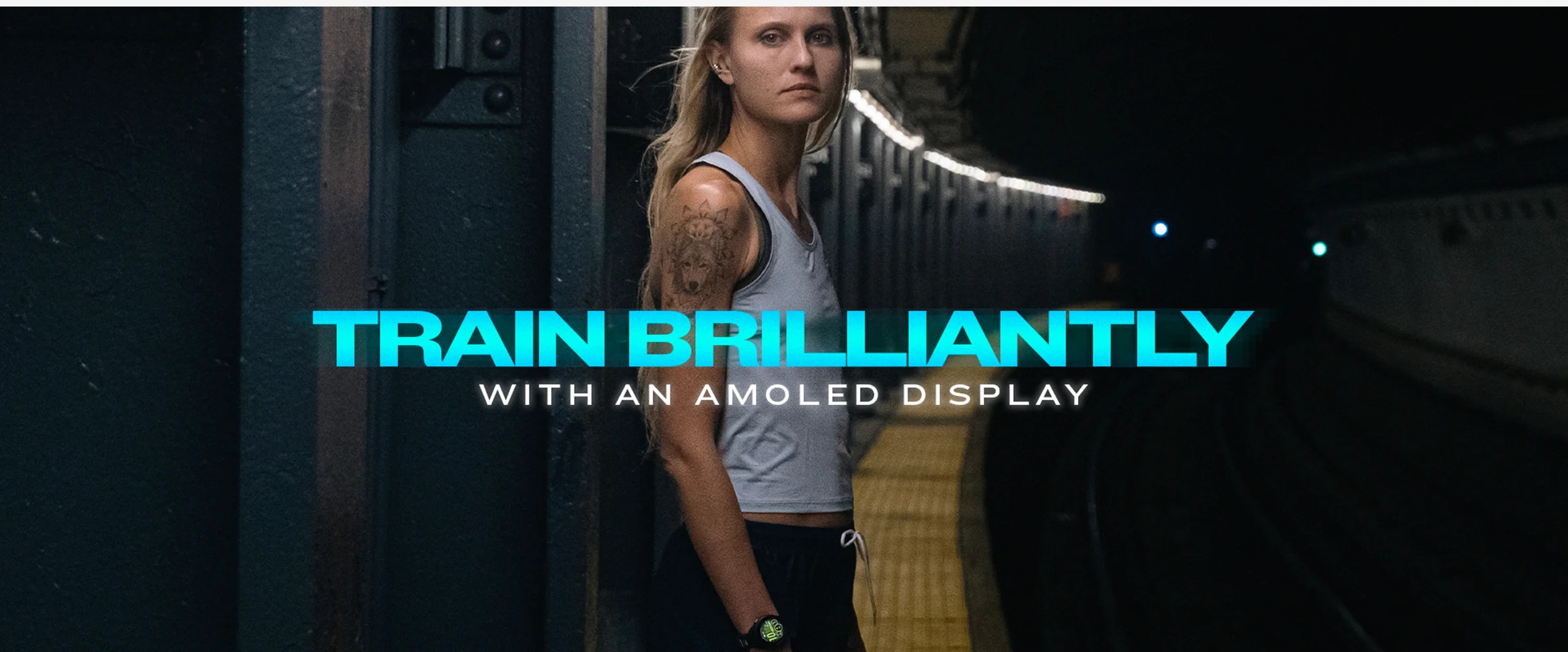 Montre connectée GPS de course et de triathlon avec écran AMOLED et fonctions avancées d'entraînement et de récupération.