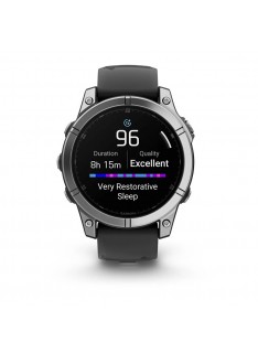 Dotée d'un écran AMOLED ultra-lumineux de 1,3″ avec une lunette en acier inoxydable et un boîtier en polymère renforcé de fibres de 47 mm, la montre connectée fēnix E respecte la norme militaire américaine en matière de résistance à la chaleur, aux chocs et à l'eau.